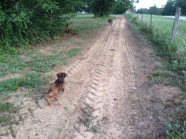 Looking north back towards the “hill” where dewberries grow in May and where we run and ride dirt bikes up and over and down.