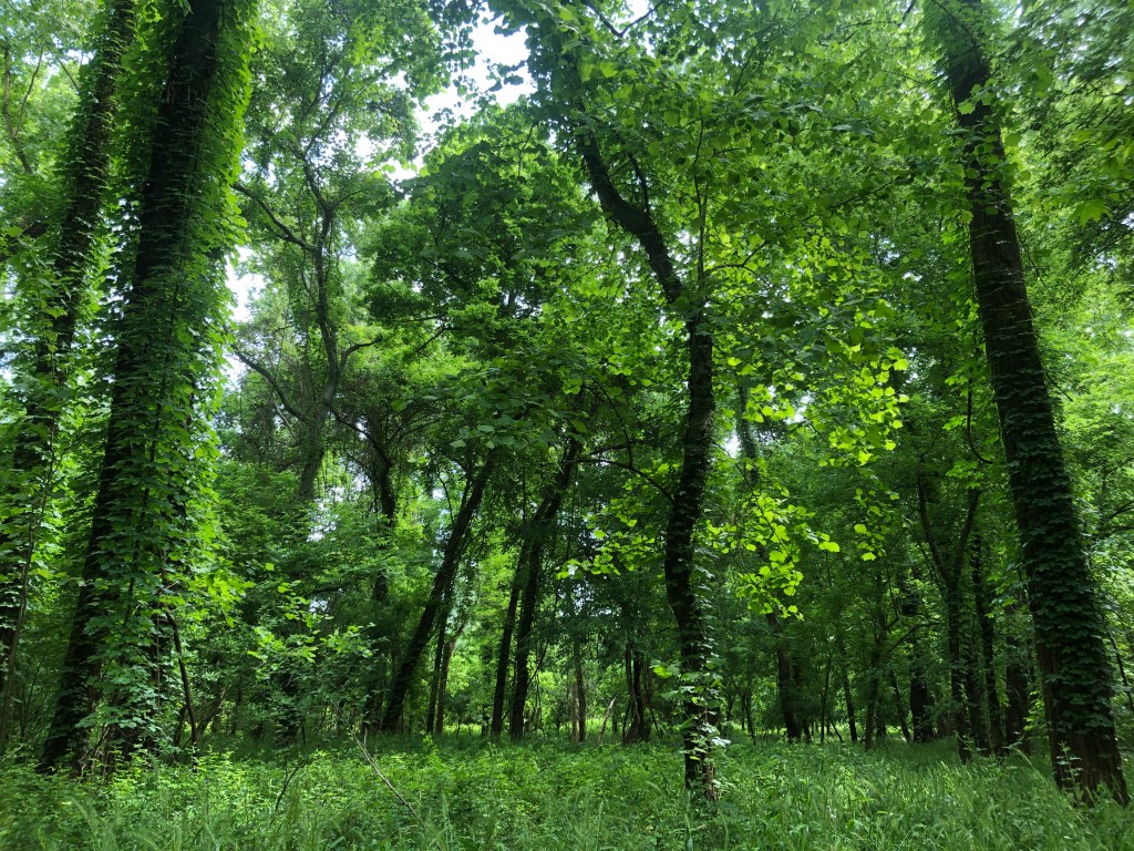 With each passing mile through lush , green nature , alone with only the birds and deer