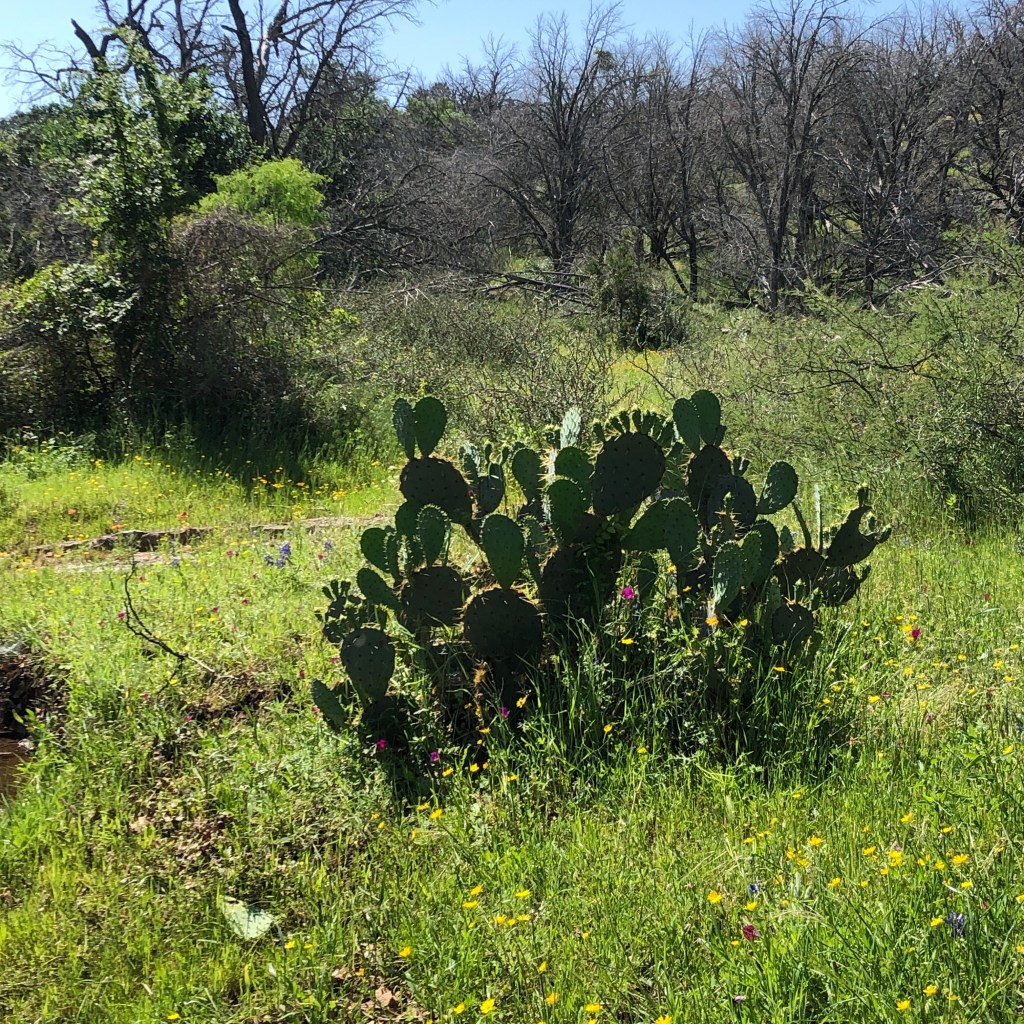After taking those photos I went back to get ready to run my half marathon. I ate a banana and drank half of a Red Bull, stashed some snacks in my vest since I’d forgotten to pack gels , made sure I had all the various things I might need in case I got lost since I’d never been on these trails before and it’s a big place, sprayed some bug spray on my legs , and locked my van . There was no official starting line but I had learned from a friend where I should start . I hit start on my watch and off I went ! I ran from just in front of the pavilion through some campsites and all the way around the lake and then out into the ranch . I hadn’t gone far before I met some cows eating grass . I’m scared of cows, but they ignored me . The trail started off pretty easy with mostly red dirt with some rocks . Later it would change a lot . There were tons of wildflowers everywhere! It was so beautiful I felt elated! Or maybe it was the Red Bull . Either way I was feeling super good . A few runners passed me which was good because then I knew I wasn’t alone . I was having a blast and enjoying the incredible terrain and views.