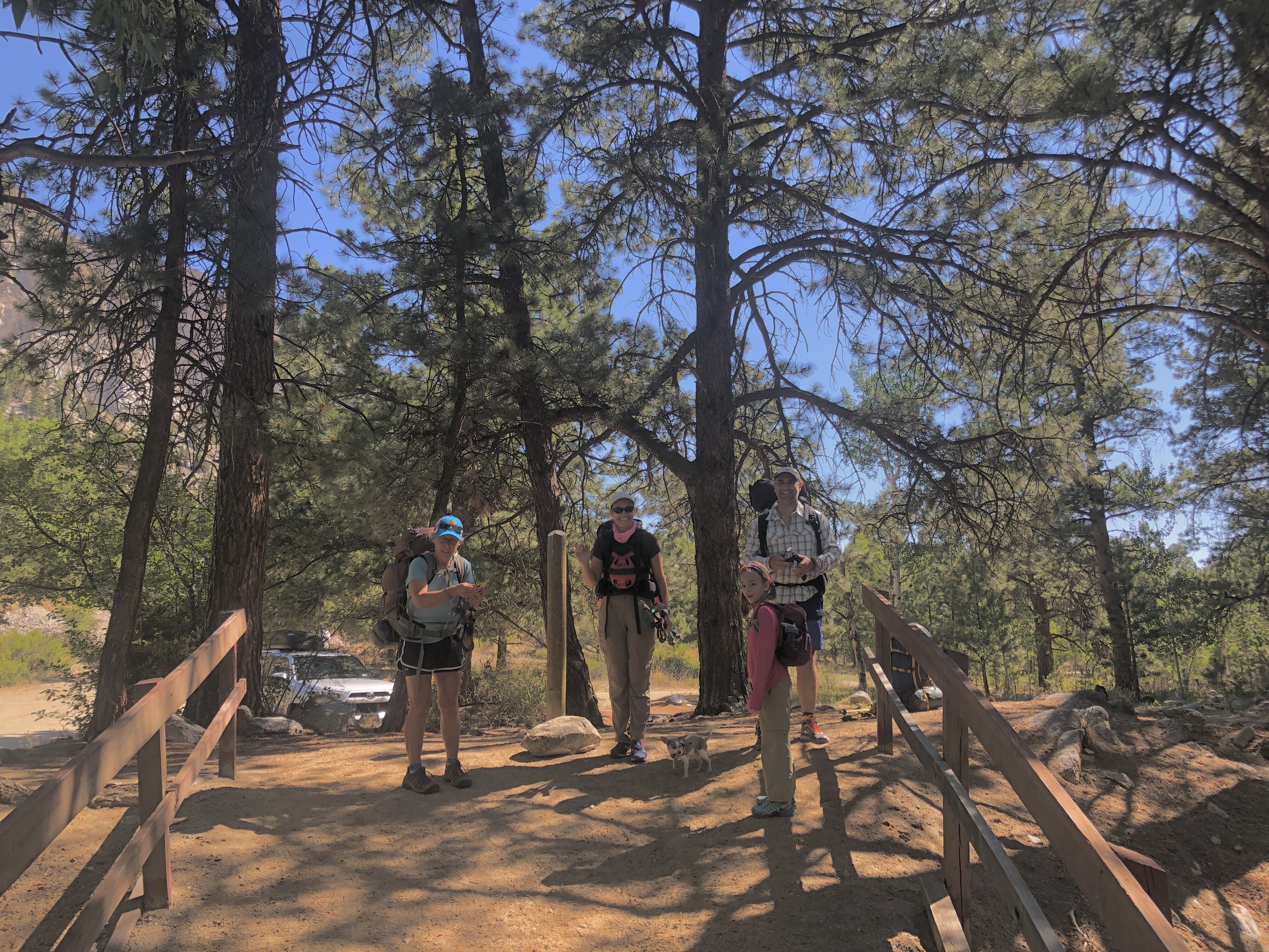 After packing up, we left her camper at a friend’s house since we would not need it for a few days, grabbed some to-go salads from Trader Joes and then drove the hundred miles to Twin Lakes where we would camp that night . Luckily we found a good site and set up our tents and ducked into them right before it started raining. Afternoon and evening showers would be the pattern for the next few days. We got with re-acquainted with our friends and their daughter and tiny dog after they arrived. They were traveling in their cool customized camper van which they slept in that night.