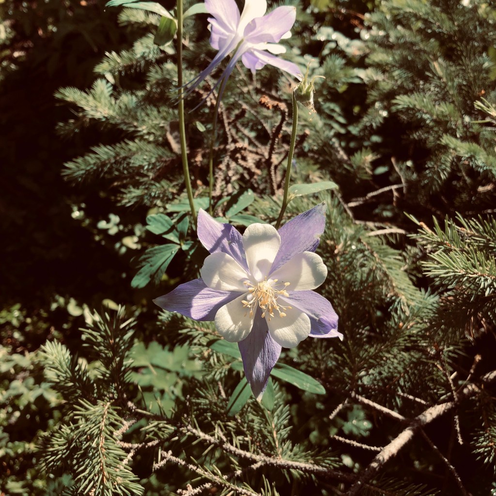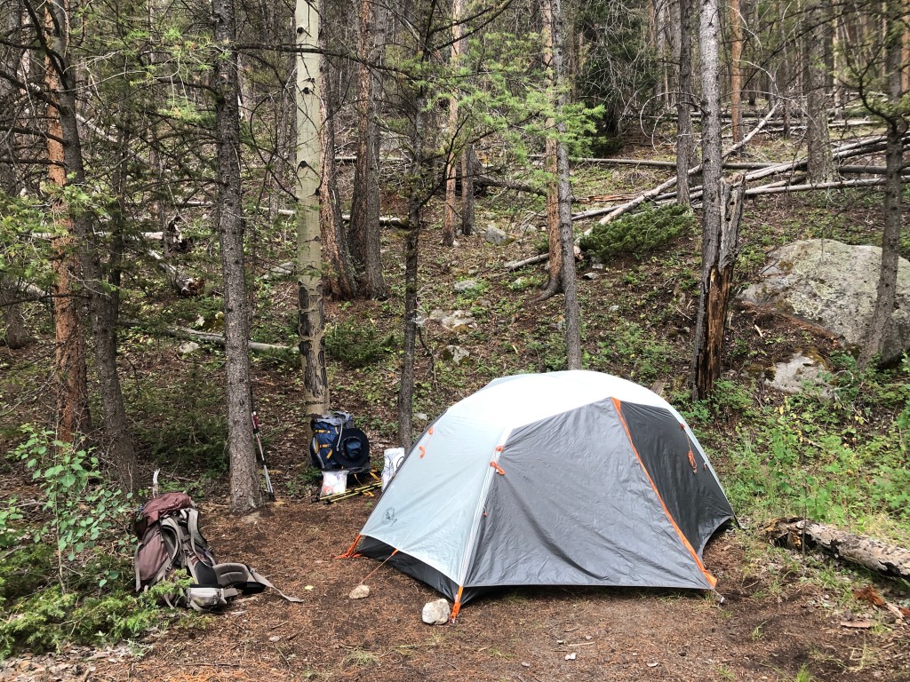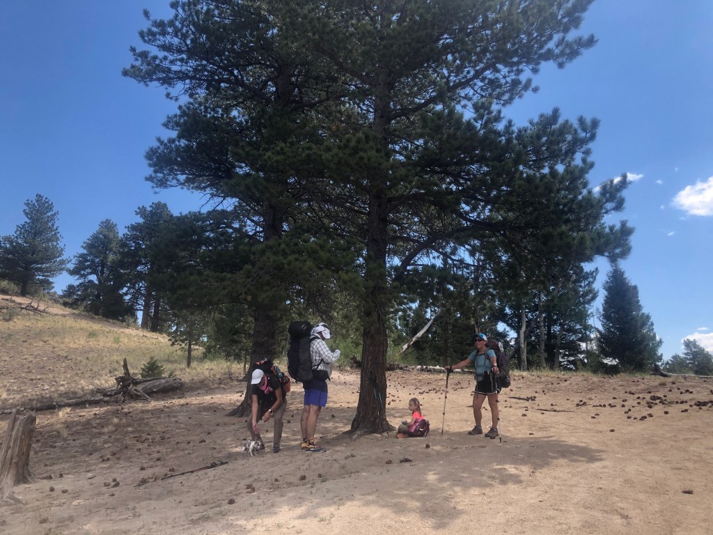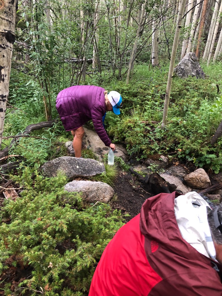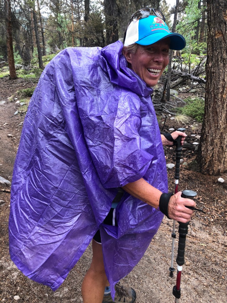 Shortly after we started hiking again the rain started which is common during July in Colorado. We put on our ponchos and kept going. I silently prayed that it wouldn’t lightning or rain too hard and it didn’t . Along the way I was trying to find the best posture to carry my pack. I eventually learned that I needed to stick my butt out a little more than usual. By the third day I was much more comfortable.