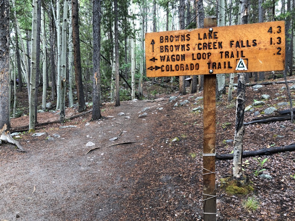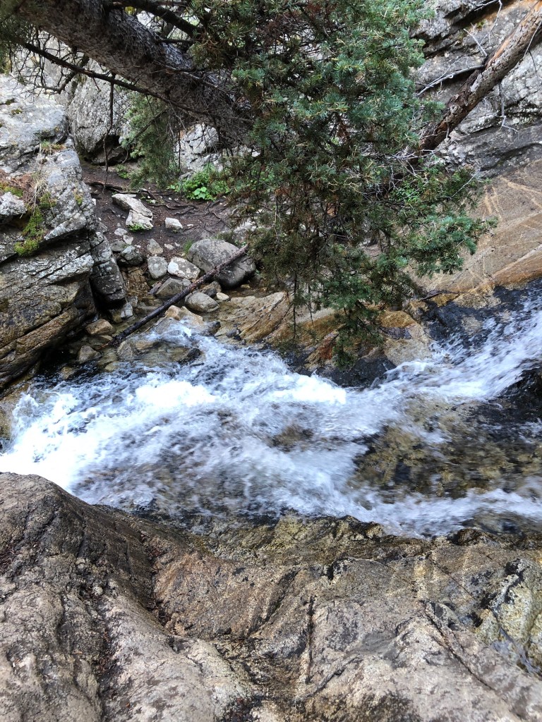 After a couple more hours we came to the area near a stream where we had planned to refill our water and camp for the night and looked around for a good flat area for our tents . Shortly after setting up camp in the wind and rain , the rain cleared and we decided to go hike a nearby trail called Browns Creek Falls which turned out to be a real gem. That trail lead us to some great camping areas, flowers , streams and a beautiful waterfall. We didn’t take our big packs so the hike was much easier . We also passed some horseback riders along the way. Do not skip this trail! If we had known about it we would have camped out there. The trail continues further , but we just did an out and back . This trail is also accessible from off the main Colorado Trail. The post-rain temperature was cool and comfortable, thus the jackets. I even wore gloves at times during the trip.