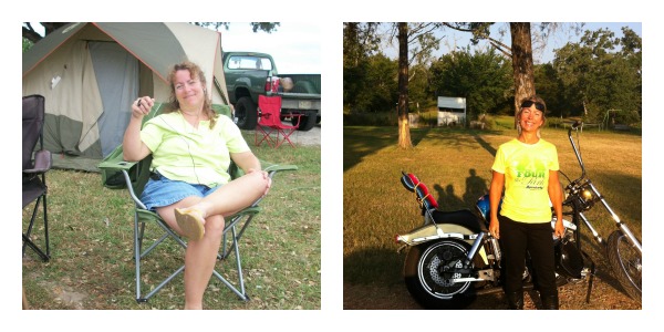 woman in chair and woman by motorcycle