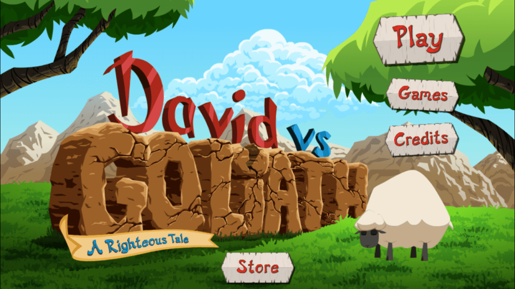 David Vs Goliath looks fun . The kids have to tap the screen to keep the story going and get points for various things. https://apps.apple.com/us/app/david-vs-goliath-bible-story/id763218550