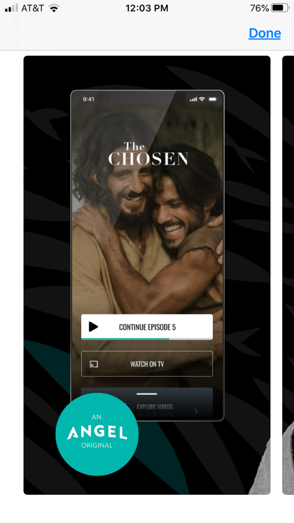 The Chosen is a popular TV series and you can use the app to watch it . https://apps.apple.com/us/app/the-chosen-stream-the-series/id1473663873