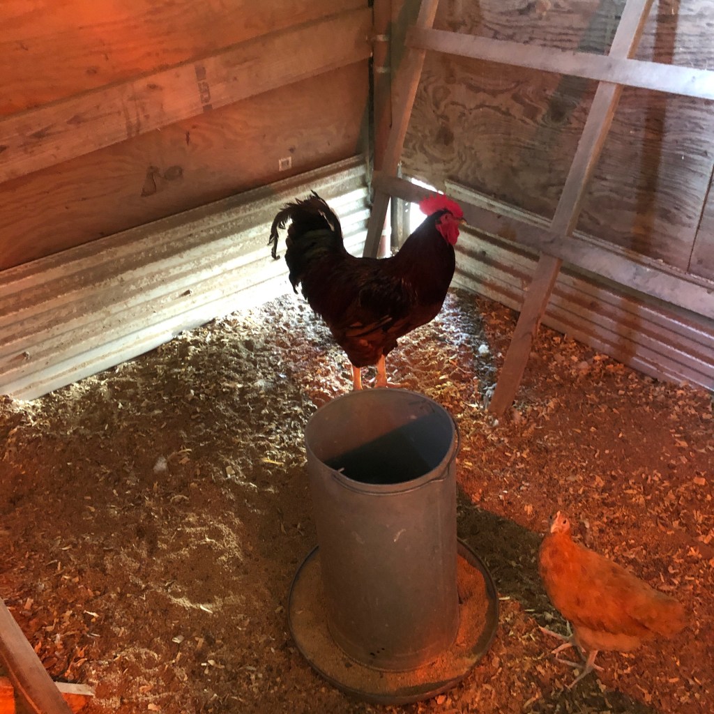 The youngest chick is getting pretty big . She flies in and out of the cage.