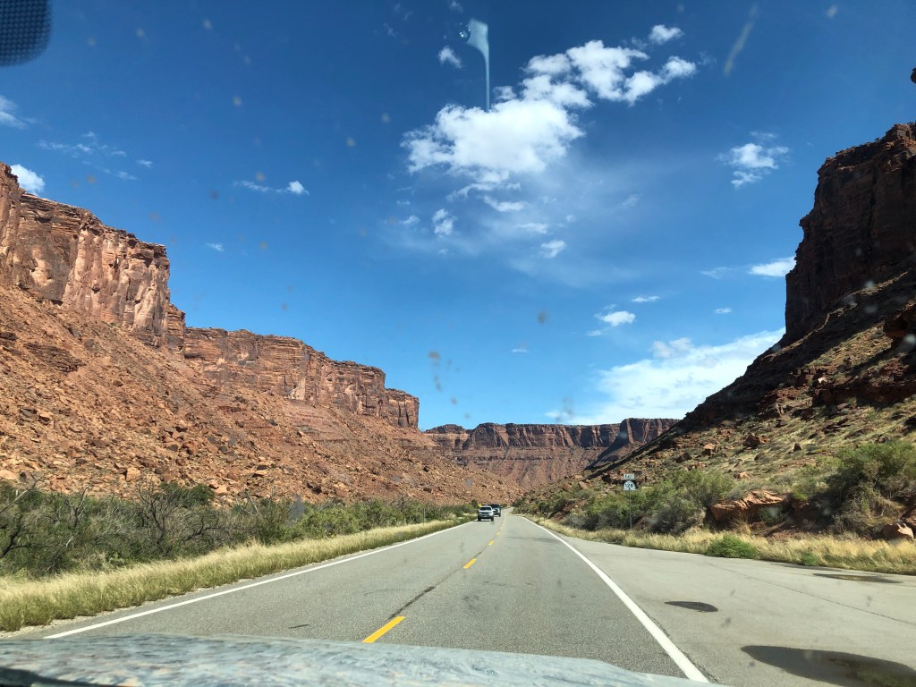 As we approached the parking lot the weather alerts started. Flash flood and severe thunderstorm warning ⚠️. It was still sunny at that point, but as we drive towards Moab the wind began to pick up. We met the pouring rain at the highway intersection. We keep going and eventually drove out of it. The town of Moab took the brunt of the rain and hail. My nephew was out on his bike when it hit. He was not harmed.