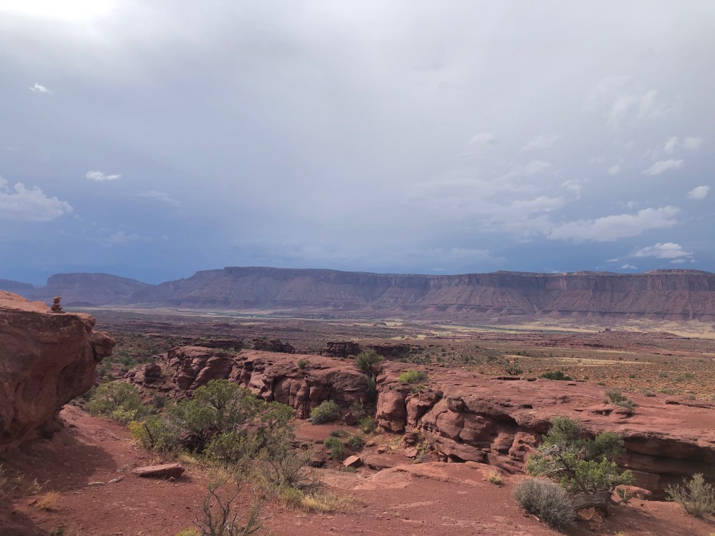 The Canyonlands area seems to be stuck in an afternoon storm weather cycle. When we started our hike we were begging for shade and drinking lots of water.