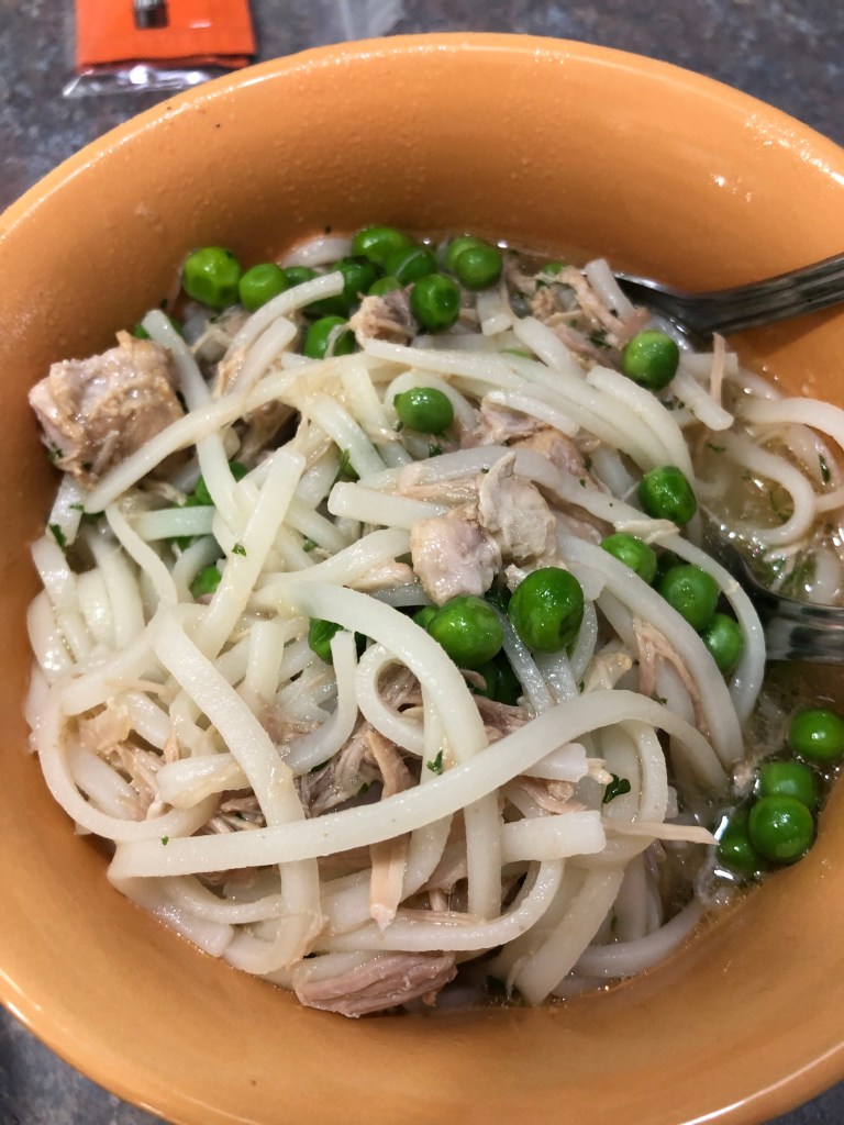 Somehow I also found the time to cook (the above photo is a tasty new concoction of pork and rice noodles and peas) and clean and shop and take care of Grace, and feed my cats, walk the dogs, and gather eggs from the chickens, and do my Bible study and record a couple of podcasts.