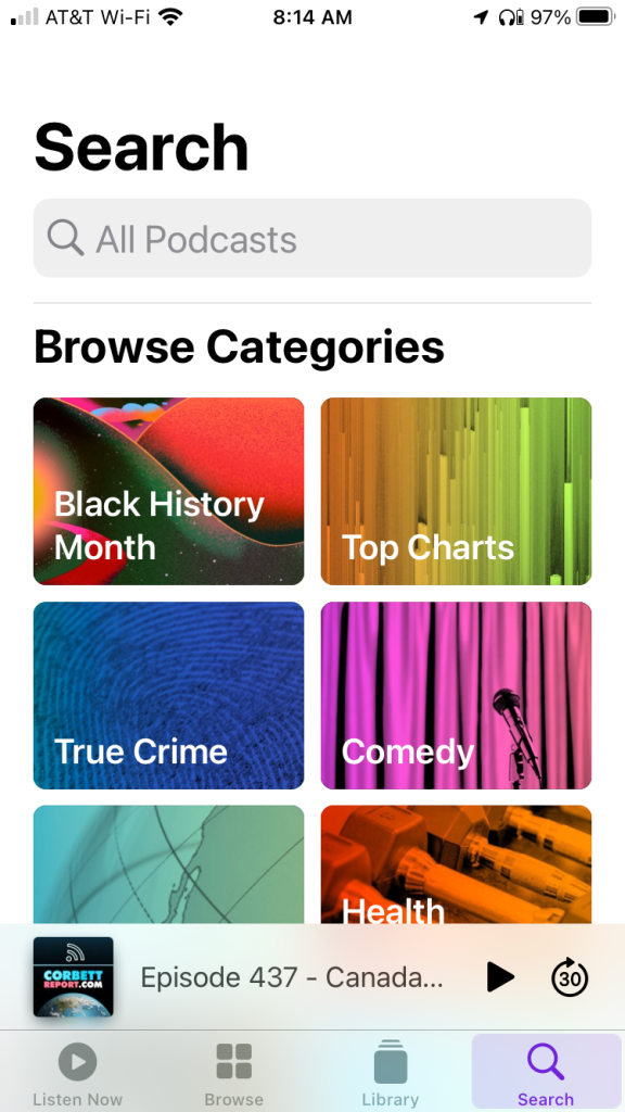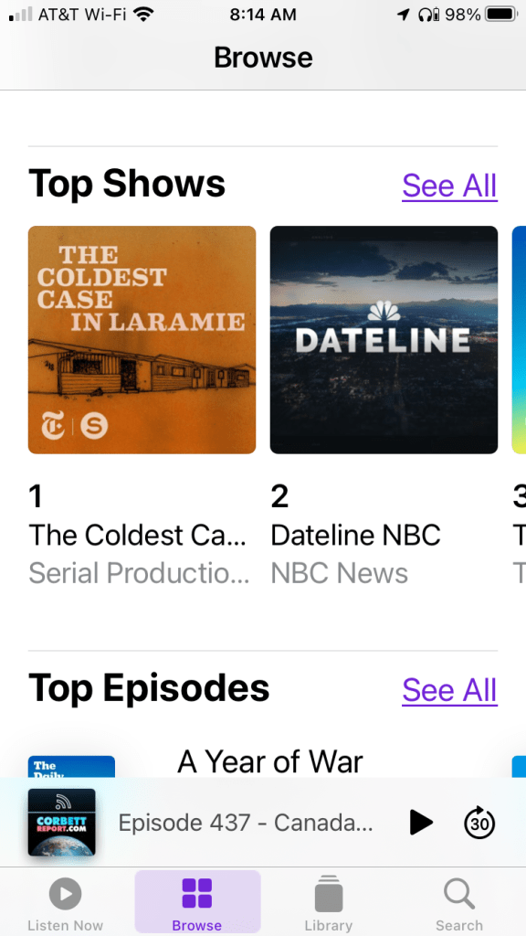 See the photos at the bottom of this article to see what the Apple Podcast app looks like, or just go to your phone and explore. See the captions on the photos for more info.