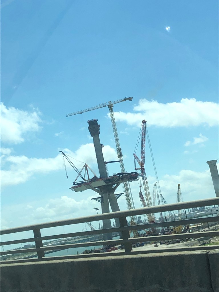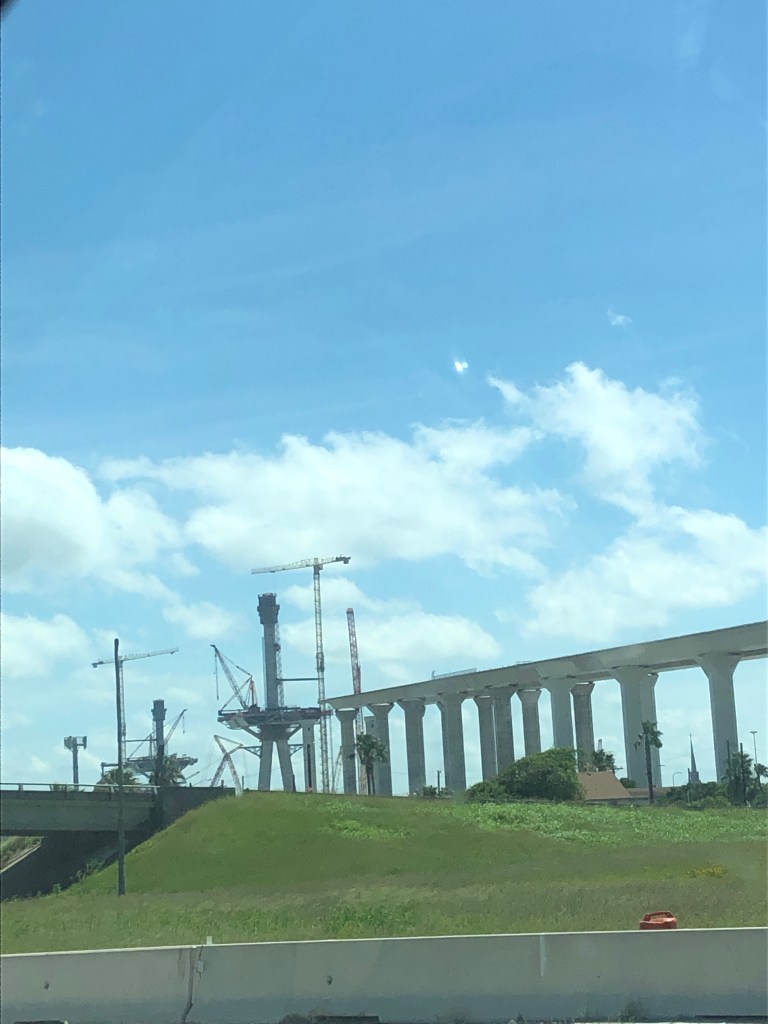 Thought I’d share some photos from the flat rural farm lands on the way to the coast for those of you who haven’t been to Texas . Field after field of crops for miles. Then as we started getting closer to the coast we began to cross some watery areas. The bridges you see are going into Corpus Christi. One is still under construction and it is going to be gargantuan! We are headed to the beach . I’ll take more photos.