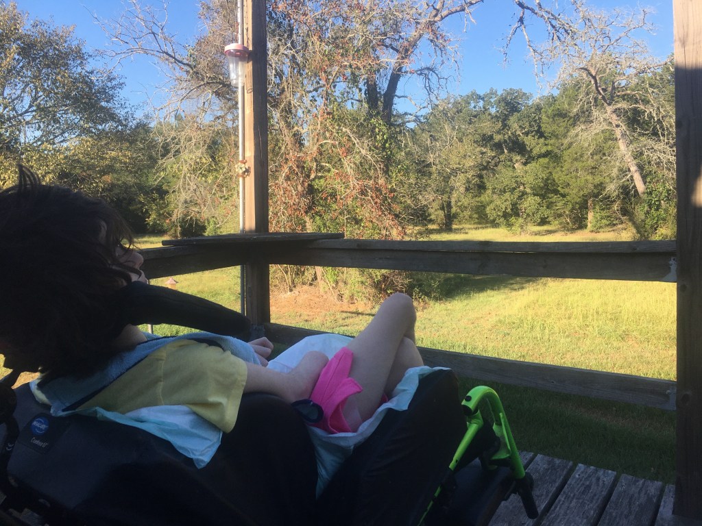 Today I checked the thermostat that tells the outside temperature and I got a welcome surprise: 70 degrees!!! I was so excited! It feels really nice at the moment. I even brought Grace out on the deck . It’s been awhile since she’s been outside because of the heat .