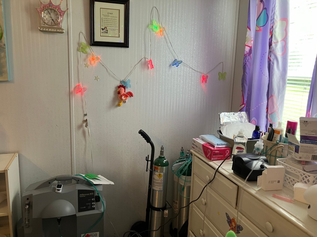 Life has changed in quite a few ways since Grace got her tracheostomy after becoming ventilator dependent while in the ICU for severe pneumonia. We are adjusting and getting used to her new needs. Being older parents and set in our ways, change is not easy, but with Christ anything is possible. I thought I’d share a little about our daily routine and some photos of her room remodel.
