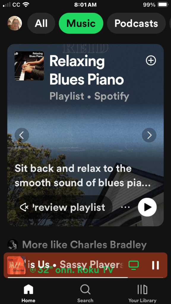 At home I used to be fine with a quiet house while I read and wrote and researched, but now that I’m doing less of that I keep the music or TV going. My favorites lately are old Price is Right episodes that play continuously and soft jazz or a channel on IHeart radio called Yacht music.