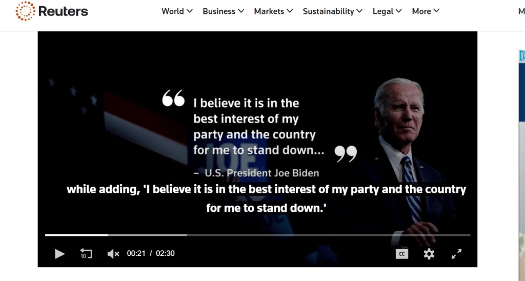 For example, I get emails from Reuters. Not because I always agree with their interpretation of events, but because they are very quick to get the information out. For example, yesterday I was looking at my phone at 1:30 and I saw that Biden had stepped down. I thought I saw it in an email, but I must have clicked on a Reuters email which took me to their website where I saw the following Breaking News. https://www.reuters.com/world/us/biden-81-pulls-out-presidential-race-2024-07-21/