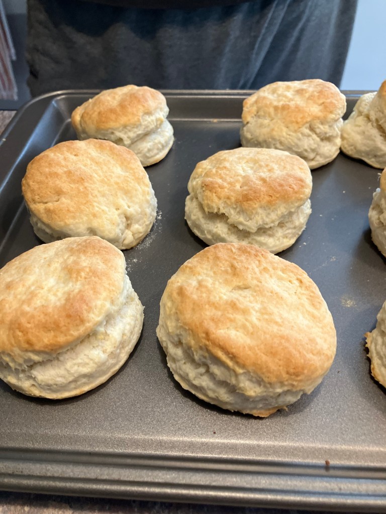 Things are looking up! I’m finally getting some help with the cooking. My husband is great at barbecuing but since we got married 33 years ago I have been the one in the kitchen making three meals a day. But he has recently taken an interest in watching cooking videos, which the algorithm is reinforcing, and he saw a guy make these biscuits and wanted to try the recipe.