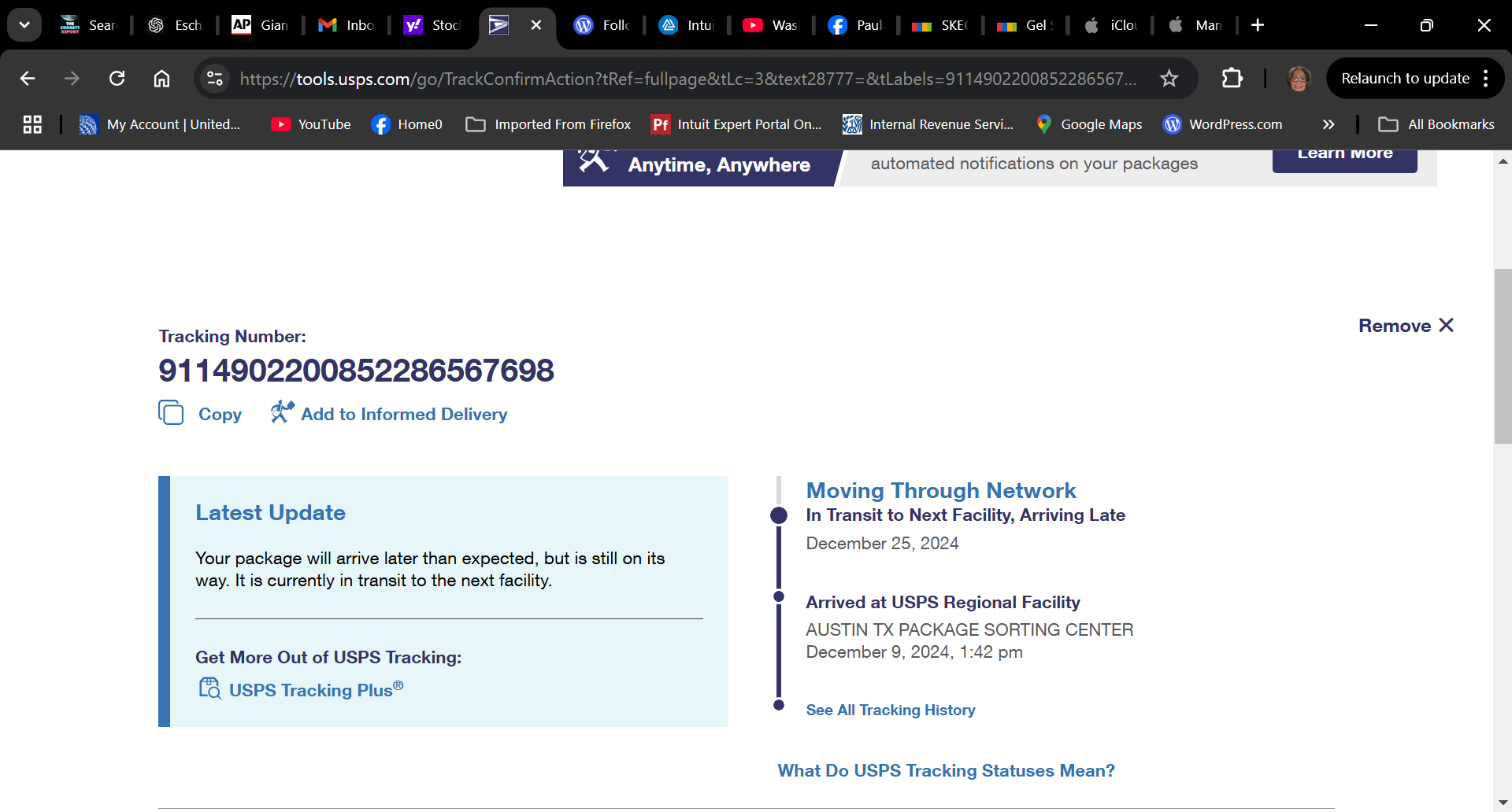 This is ridiculous! The following timeline is in reverse order because that is how they display it for some reason. Do not send anything valuable by USPS!